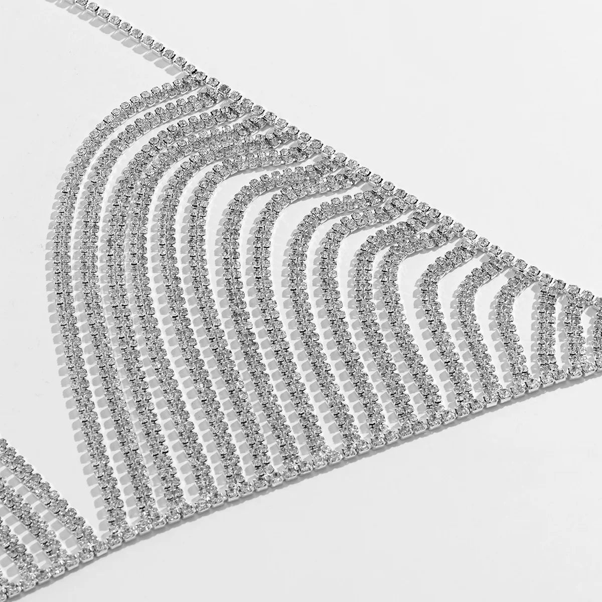 Made to shimmer under the sun or the moon, this rhinestone bikini top catches every ray and every glance. Delicate crystal details meet modern confidence — a piece that moves effortlessly from beach to rooftop, from daydream to after dark.